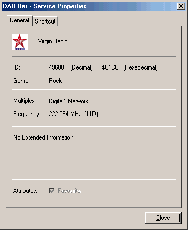 If you have a keyboard with user configurable keys or a remote control device that can launch a custom application copying the "Command Line" in to the devices configuration utility for the device will enable you to use these buttons to load DAB Bar and/or switch services. The command line text can be selected and the windows cut and paste can be used to copy the text.